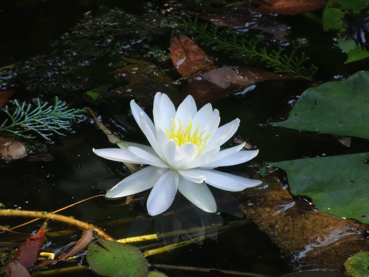 色は白く、水の上で “ 凛 ”と咲いておる!!