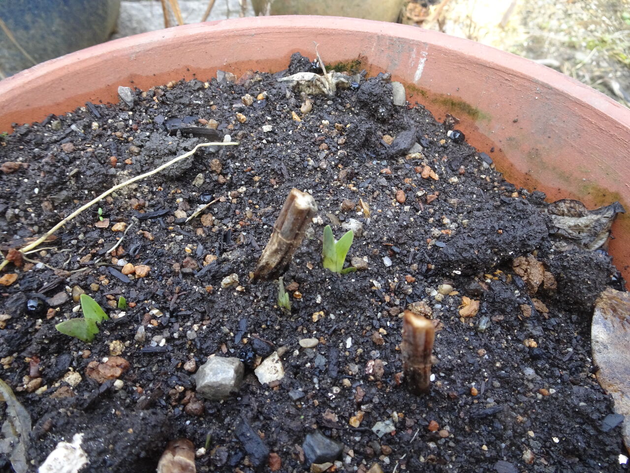 2022年03月11日 発芽 春じゃ!! 春じゃ!! 芽が吹いた!! 芽が吹いた!! 寒い!! 寒い!! と言っておったが!! いつの間にやら草花の目が吹いた!! 土の下では、冬の間に根を張り巡らせ、 栄養を吸い上げ、春への準備が怠りなかった!! エビネの芽が出た!! 檜扇の芽が出た!! 武蔵鐙の芽が出た!! 山茶花の花芽も大きくなったわ!! やはり春じゃのう!!