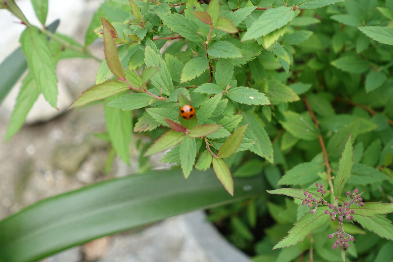 2022年06月22日 テントウムシ おう、テントウムシが居る!! 和尚は、テントウムシは害虫じゃと言うとる!! ほったらがしじゃが!! 殺虫座右を撒くでも無し、取り除くことも無い!! 狸の儂からすると、可愛い虫じゃが!! まあ、好きにさせておこう!!