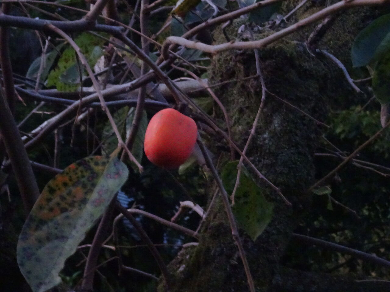 最後の柿じゃと思っていたが、鳥が残しておる!!