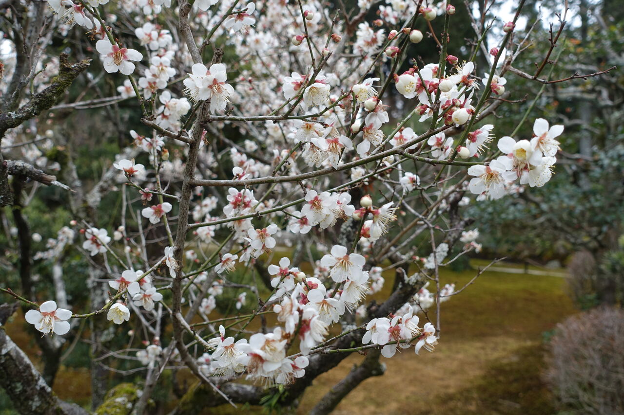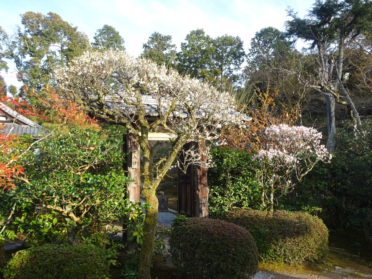 2023年03月09日 梅満開 おや!! 何時もは通ってない所が白一色じゃ?? おう!! 梅が咲いとる!! それも小門の両側じゃあ!! 狸の儂に “ どうぞお通り下さい ” と!! では、では正面から庭に入ろうか!! 中々よいもんじゃ!! 歌舞伎の幕の間から、出てくるような気分じゃ!!! おんにゃあ?? 庭にも幕が掛かっておる!! これも歌舞伎の舞台か?? いやいや、矢張り白梅じゃ!! よく咲いておる。 花びらが、まっことに美しい!! 近くから見ても美しい!!! この前の雪の精!! に、劣らず美しい!! 自然とは、よいもんじゃ!!!!!