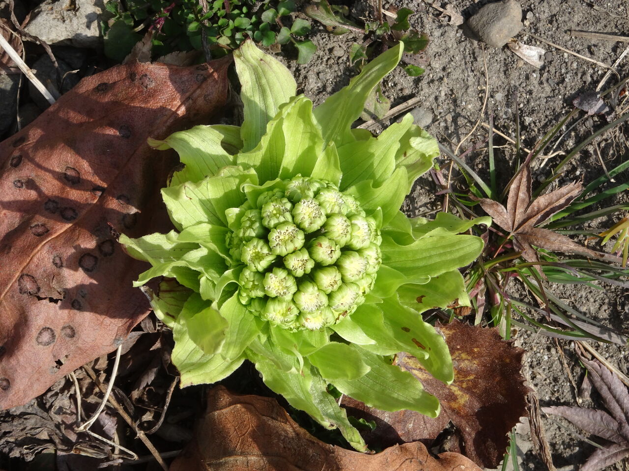 蕗の薹が出ておったので,摘んで料理をしちょる!!」