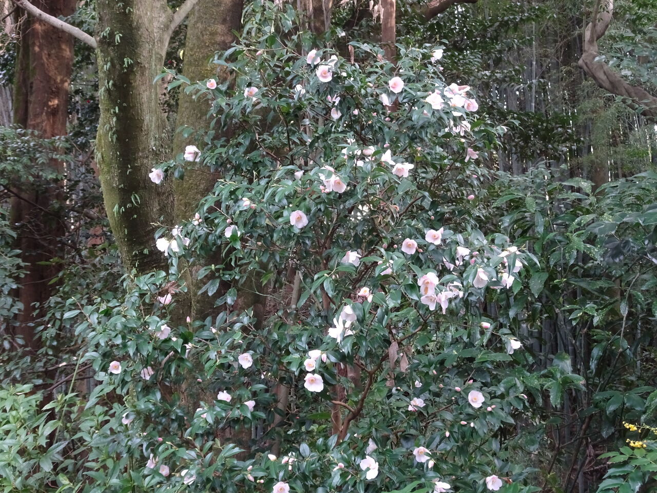 2023年04月11日 満開 満開! 満開!! 満開と言うと “ 桜 ” “ 梅 ”を 言う!! じゃが、山茶花も満開と言うて欲しい!!! まだ、一本しかないが! 和尚が、また挿し木をして増やそうとしちょる! 確かに、この花がずらりと並び、 満開になっておると、花見をしたくなる!!! ものごっつ、花突きのいい山茶花じゃ!! 早よ挿し木の山茶花が大きくなれば良いが!! 和尚は気が長いによって、まだ数年後かいなあ?? 和尚は、木や花を買うて植えるのでなく、 挿し木などをして増やしてオル!! 幾つまで活きる気や?? 歳を考え、早よ宴会が出来るようにしてや!! 狸の儂も、和尚と同じく歳を感じとるよ!!!!!