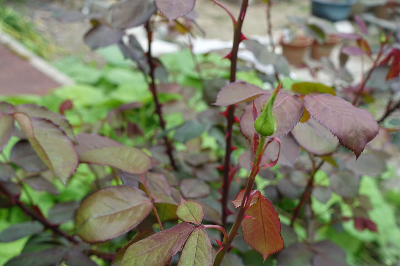 2023年04月27日 バラの準備 おう、棘の有る花じゃ。 バラ!! 美しいものには棘がある!!! 狸の世でも、美しい狸にも棘がある!! 儂も少しちょっかいを出して失敗した!!!!! じゃが、美しくなる前に、蕾を用意しておる・・・ 棘は要らんが、美しい花を見せてくれよ・・・ それも大輪の花をな!!!!!