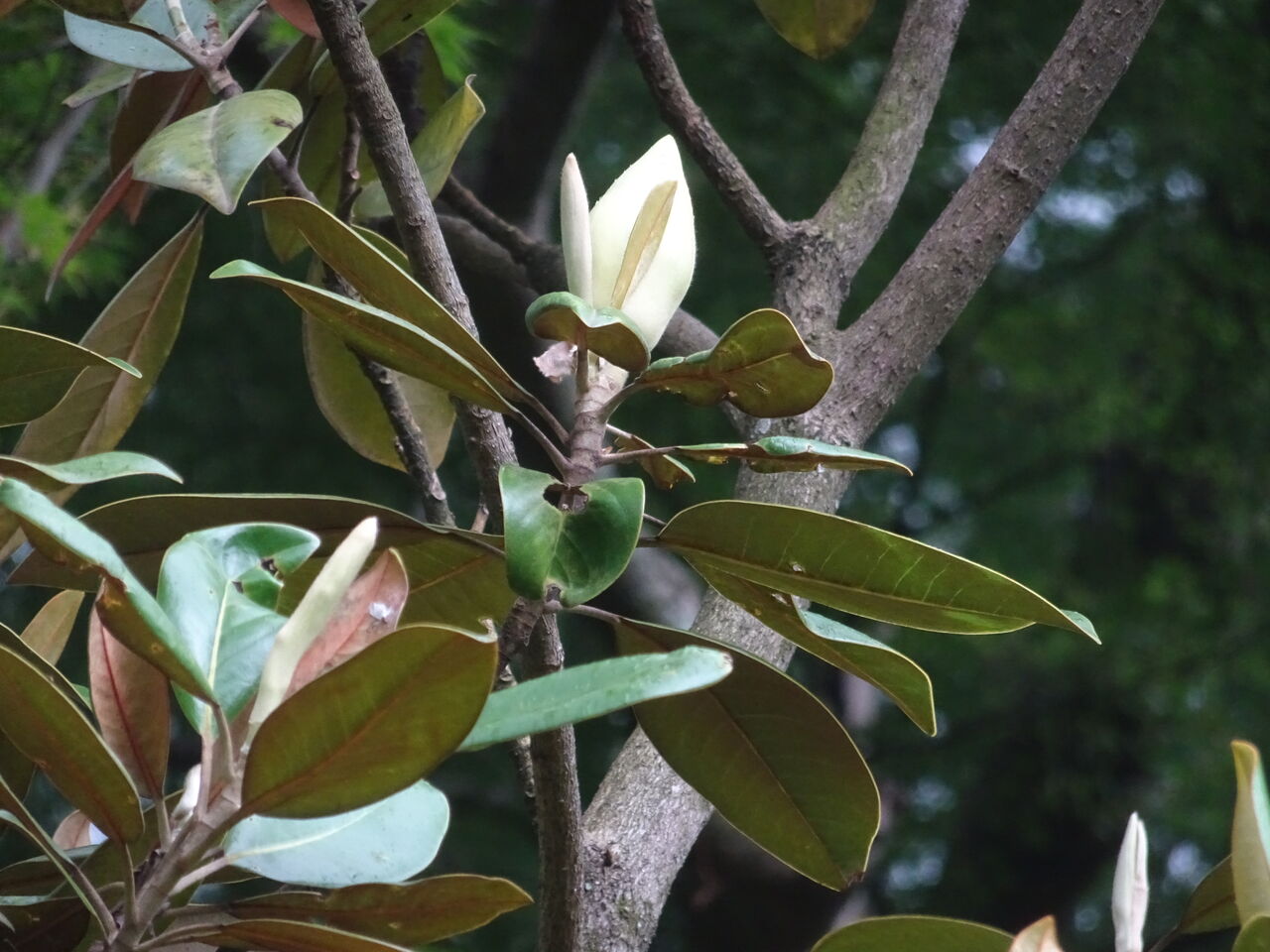 2023年06月03日 タイサンボクの花 花は面白い!! 蕾から始まって、段々丸く大きくなる・・ 最初は、藩を守るためのガウンを着ておる・・ ガウンのままで中の蕾が膨らむ・・ 温かくなり、お気くなるとガウンを脱ごうとし・・ 蕾のままで白い花弁となる・・ その蕾もぐっととした蕾から、少し解けてくる・・ そして一日で開いてしまう・・・ そして完全に開き、中の雌しべが見え居てくる・・ 面白いのう・・・・・ 花が上の方で見にくく、首が痛くなる!!!!! 狸の儂には、タイサンボクは不向きじゃ!!!!!
