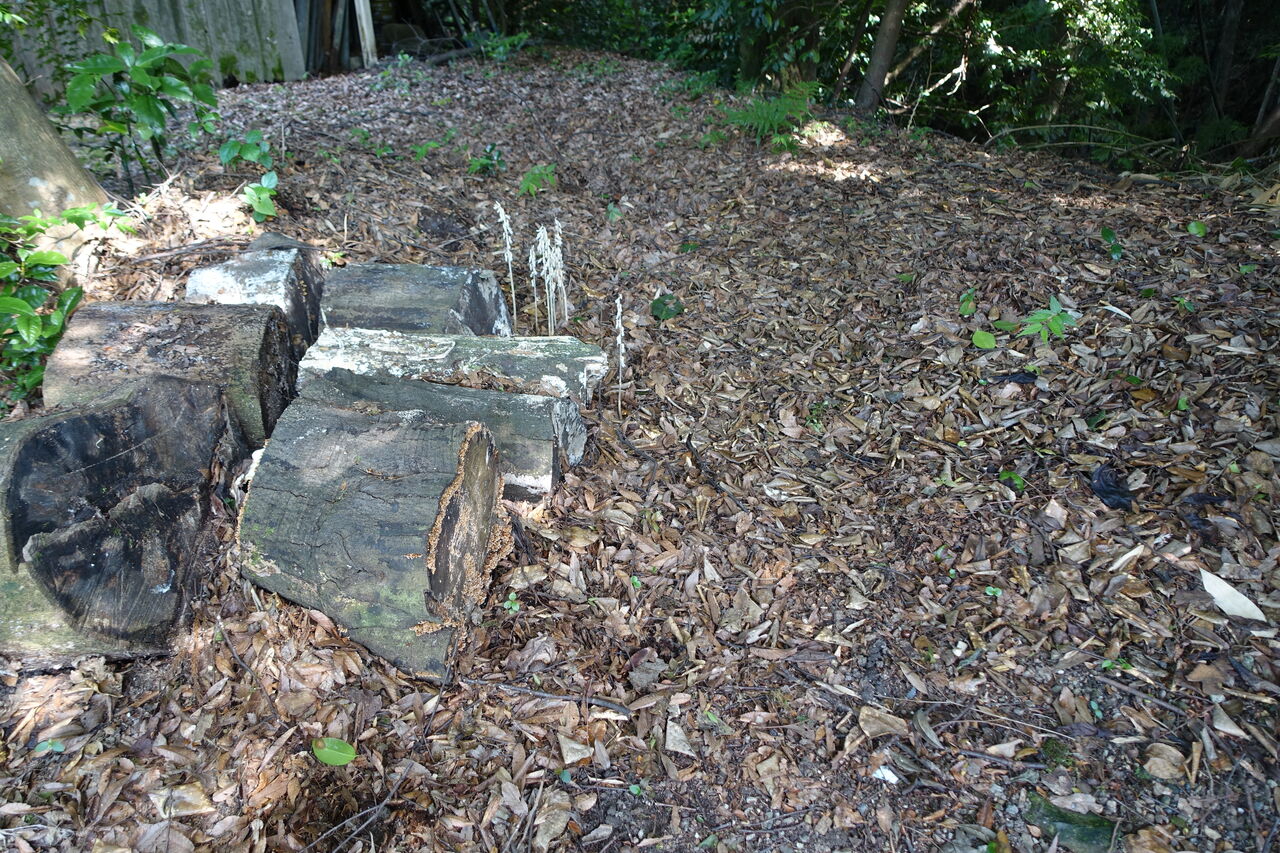 2023年07月20日 キノコの様な?? 和尚が落ち葉を集めてるとこに? 何やら白いものが出とる・・・ キノコかいなあと思い図鑑を調べても、名前が出て来ん!! キノコとちゃうのかなあ?? 確かに、キノコとは形が違うが・・ まあキノコにしとこう・・ 何本も出とる・・・ 槍の様じゃ・・・ 湿気が有り、落ち葉の腐葉土が有り栄養たっぷり!! 条件が整うと、芽を出す!!! 狸の儂も、自然の内じゃが!! キノコはもっと自然じゃのう!!! 和尚も自然の内じゃが?? 突然変異かのう!!!!!