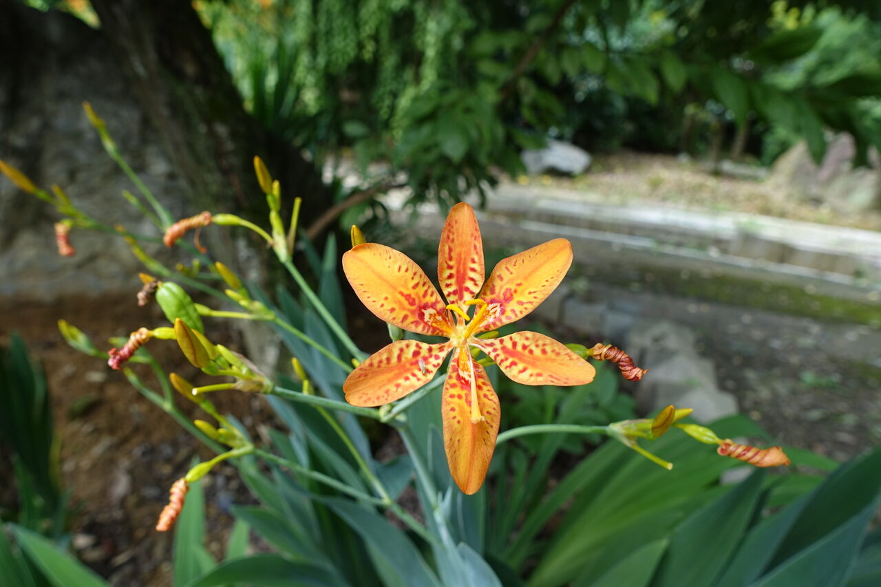 2023年07月24日 扇 檜扇の所以とは?? 平安時代から来るそうじゃ・・・ 檜の薄い板を束ねた扇からの命名らしい・・ 和尚曰く、“ 派手な花だけ見ていては分からんぞ!!” 葉っぱを裏からよう見てみ・・・ おや、確かに扇、団扇と言うより扇子の様じゃ・・・ 根元から切って、扇いだら風が来そうじゃ!! じゃが、少し重たそうじゃ・・ また、直ぐに萎れて来そうじゃ・・・ まあ、扇風機かクーラーでよいわ・・・ 和尚は、クーラーは使わんが!!! 昔の人の命名は面白いのう!!!