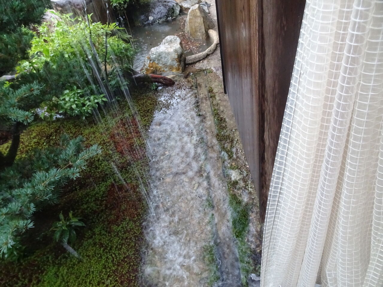 2023年09月04日 大雨 この前、大雨が降った!! 儂の家も、久しぶりに雨が漏ってきた。 和尚の寺の本堂の縁の下に逃げ込もうと思ったが・・ 行くだけでずぶぬれじゃて、諦めた!! 庭も水浸し!! 手水鉢の下の水逃がしも池の様!! 酷暑の後の雨じゃて嬉しいが。 表面を流れて、ハイそれまでよ!!! 直ぐに地面は乾き、苔は抹茶色!! 矢張り梅雨の様に、 しょぼしょぼ雨が長く続く方が良いそうじゃ!! 木々が可哀想じゃあ!! 狸の儂も、食べる花や実が少なく、困ったものじゃ!! もっと人間は、温暖化防止を考えるべきじゃ・・・・・