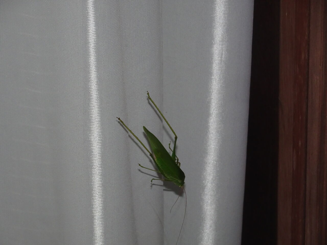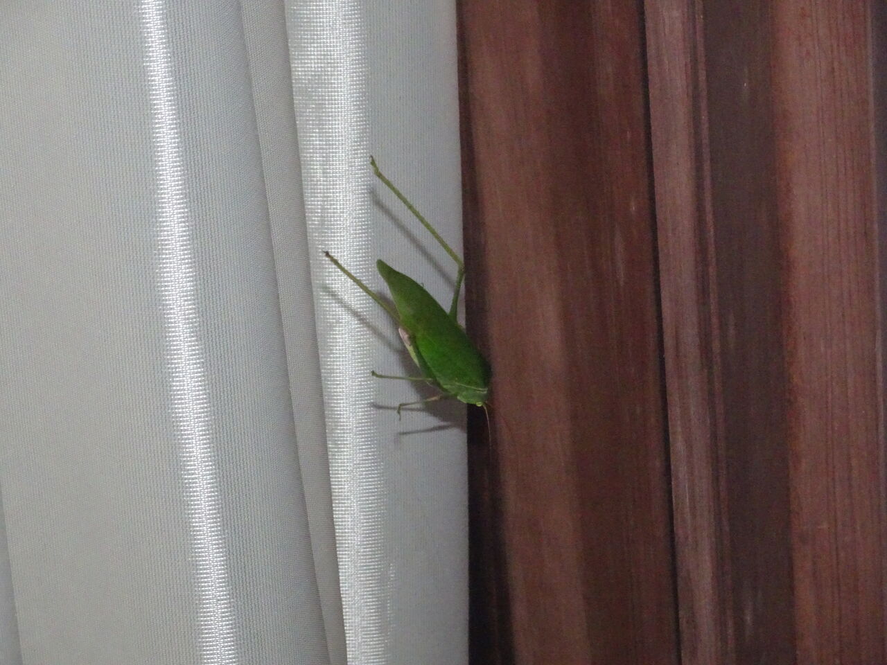 2023年09月10日 秋じゃ! カーテンの向こうに何や人影が?? いや、虫影が!! どれどれ?? 矢張り虫じゃ!! おう、儂の好物じゃ!! 秋じゃのう・・ 丸々とした、美味そうな虫じゃ・・ 動くなよう・・・ もう一歩・・・ 「こりゃ、狸殿・・」 こりゃ和尚!! 今晩は!! 「虫を殺生してはいかん・・・・・」 「和尚の儂が見てるとこでわ・・・」 へい、つい狸の本性が出まして!! すいまへん!! では、和尚に見つからように “ 頂きます!!!!!”