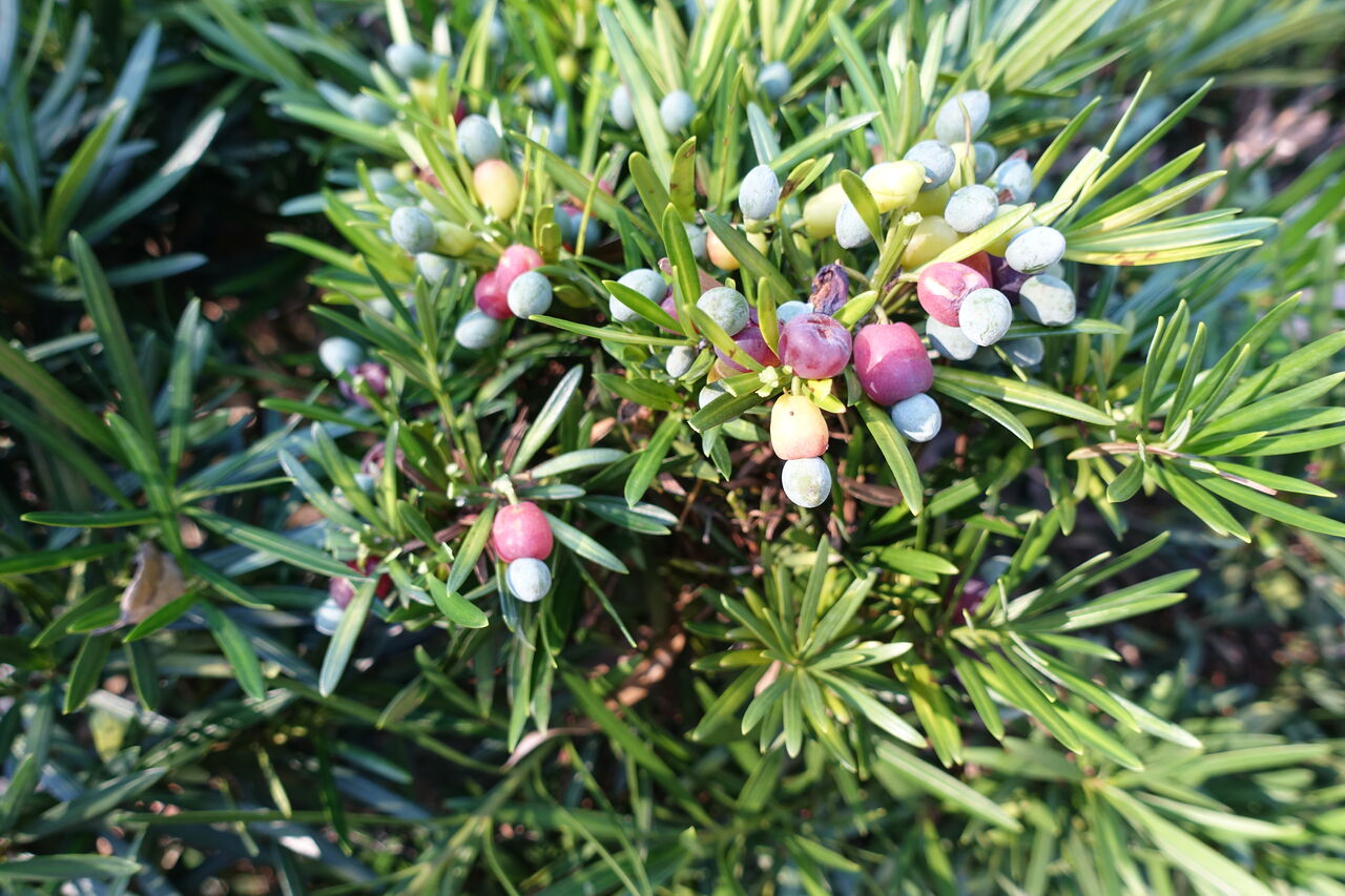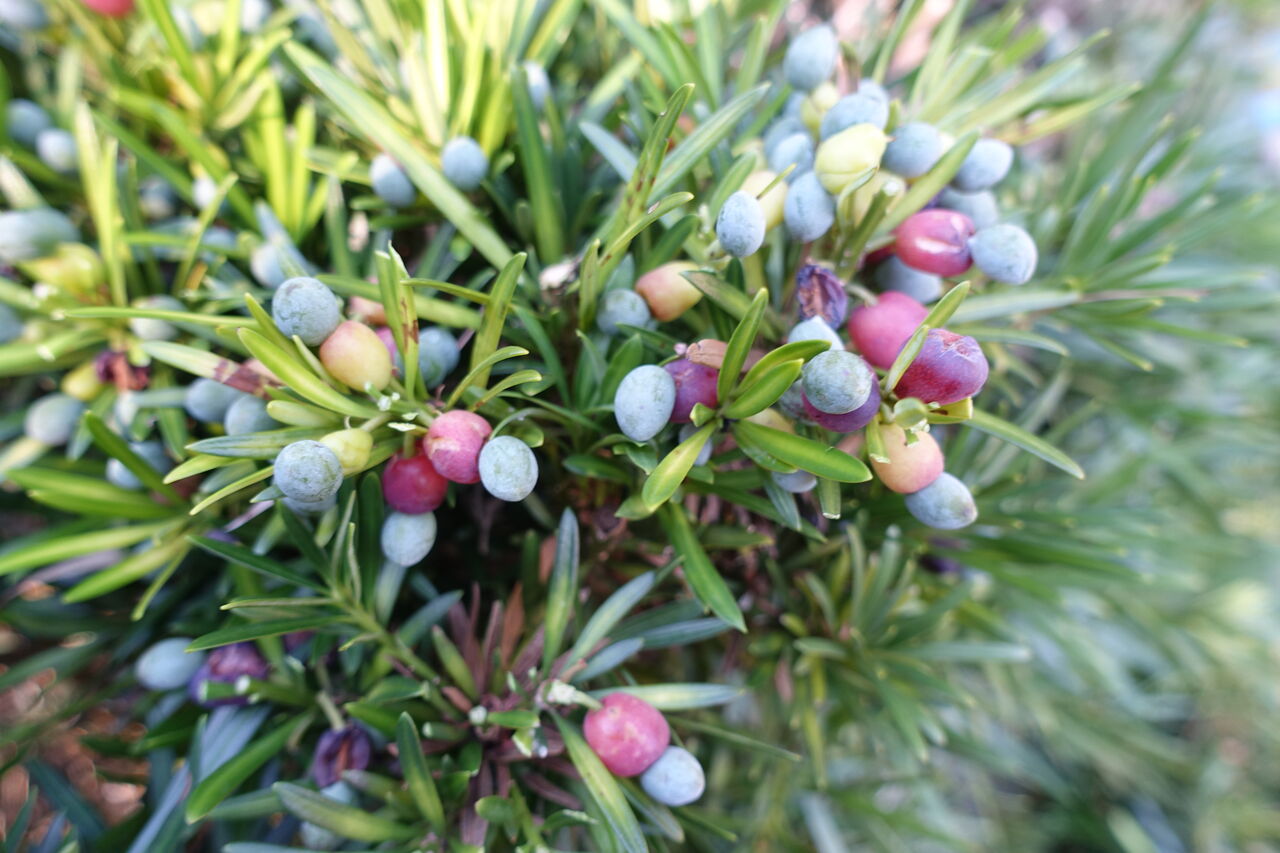 2023年09月14日 実の熟し 槇の木を和尚が今年は切らなんだ!! 槇の木に、何やら青と赤の色が付いとる?? おう槇の実じゃ!! 赤くなる前に、今までは和尚が選定していた! 実が今年は赤くなった!! 美味いものでは無いが、赤くなった!! 山桃の様に甘ければ頂戴するが!! 最後は鳥が食べるじゃろう!! 鳥どもに任せよう!! 狸の儂は、動物性蛋白質に限る!!! ミミズが最高じゃ!!!!! 勿論、コウロギも!!!!!