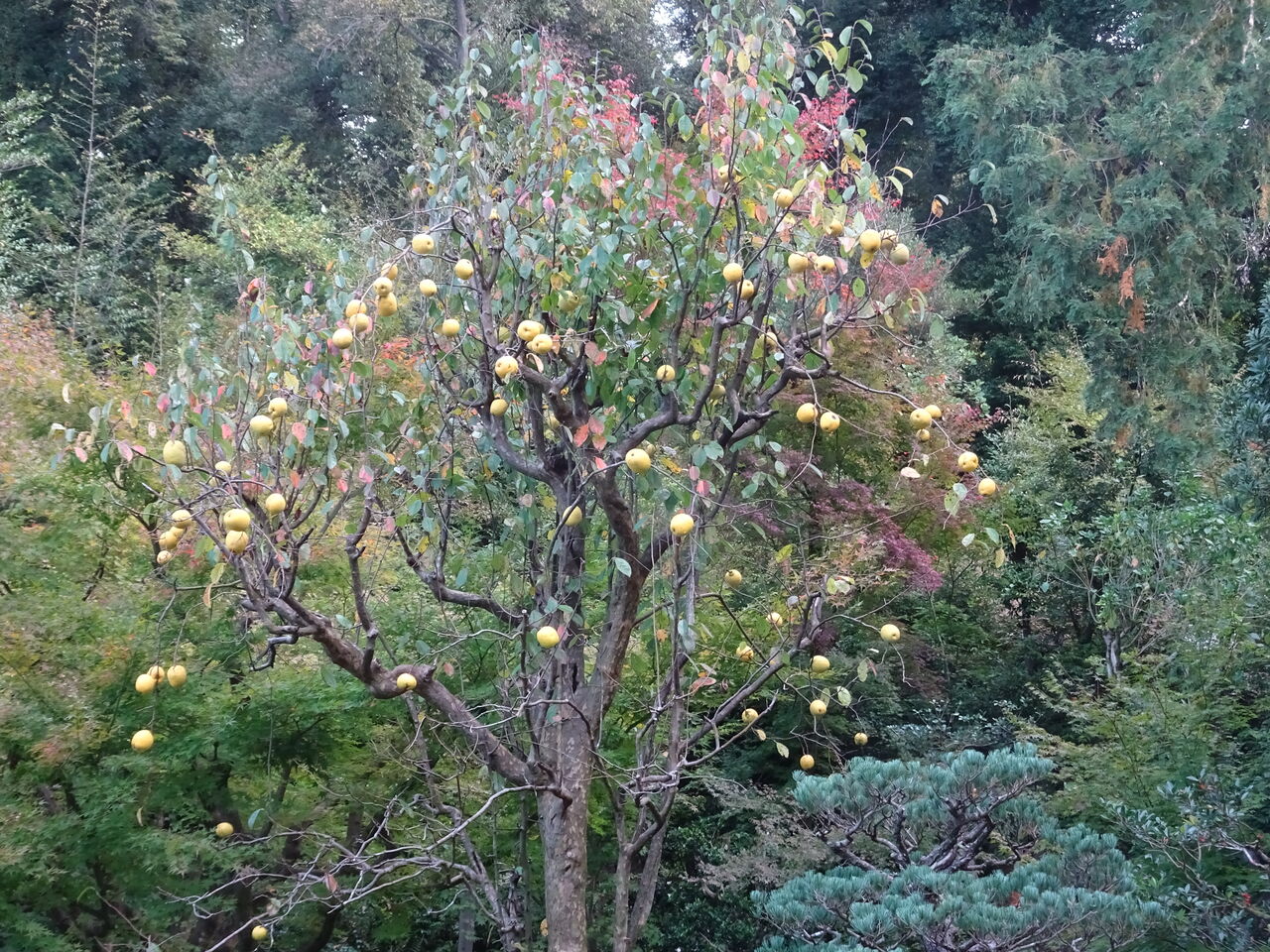 2023年11月13日 花梨の実 おう、庭に黄色い実がタワワに実った!! 花梨の実じゃなあ!! 香りは中々乙なもんじゃが。 美味くはない。 食ってみたが、固いだけで美味くは無い!!! 和尚は、花梨酒にしたり、蜂蜜に付けとるが!! 狸の儂にはくれん!! 蜂蜜漬けは是非賞味したいが!!!!! 和尚は、自分の喉薬じゃと言って、おこぼれもくれん!!! ケチケチ!!!!!