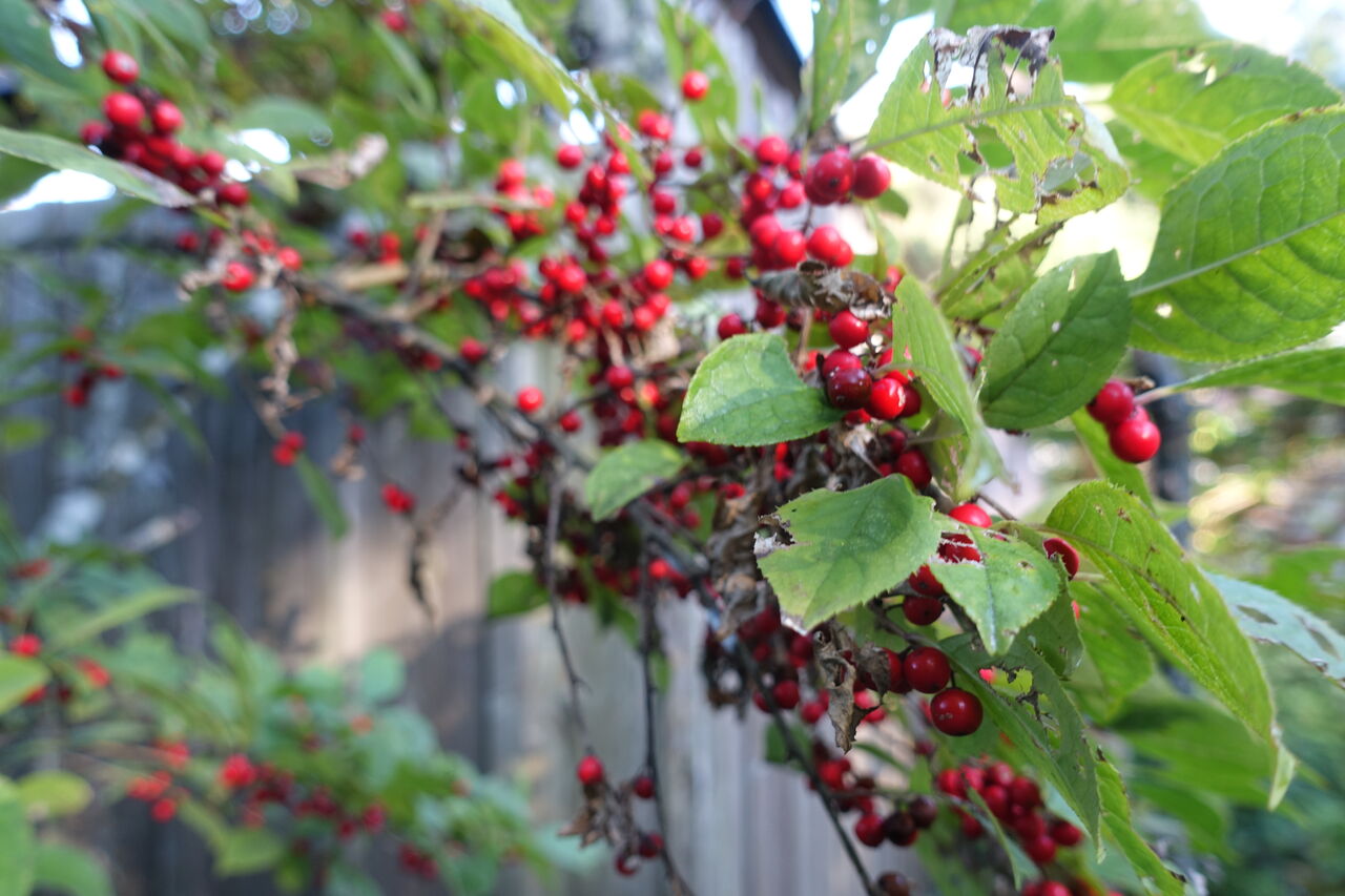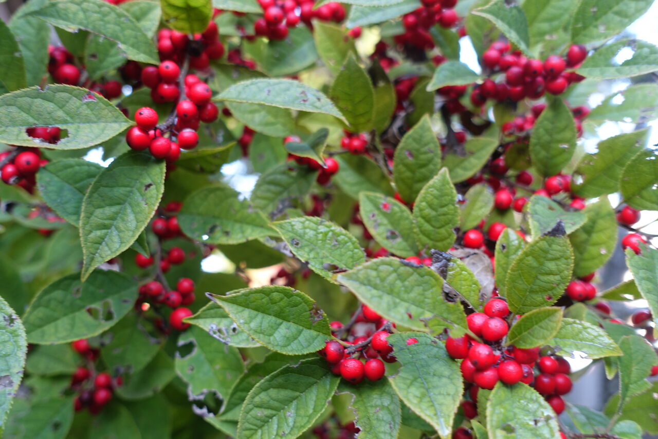 2023年12月09日 赤い実 おや、赤い実が落ちとる?? ようけ落ちとるなあ?? 何や、食べても美味無い!! 上を見ると、まだようけ付いとるが!! 赤くなると言うことは、甘くならないかん!! 赤くなる実は多いが!! 千両・万両・南天とこの寺には多くあるが! どれも甘くない!!! これはどうも梅擬と言うそうじゃ!! 梅には似とらんが、梅擬らしい!! まあ食べんさかいええけど!! 出来たら甘もなってほしい!!!!!