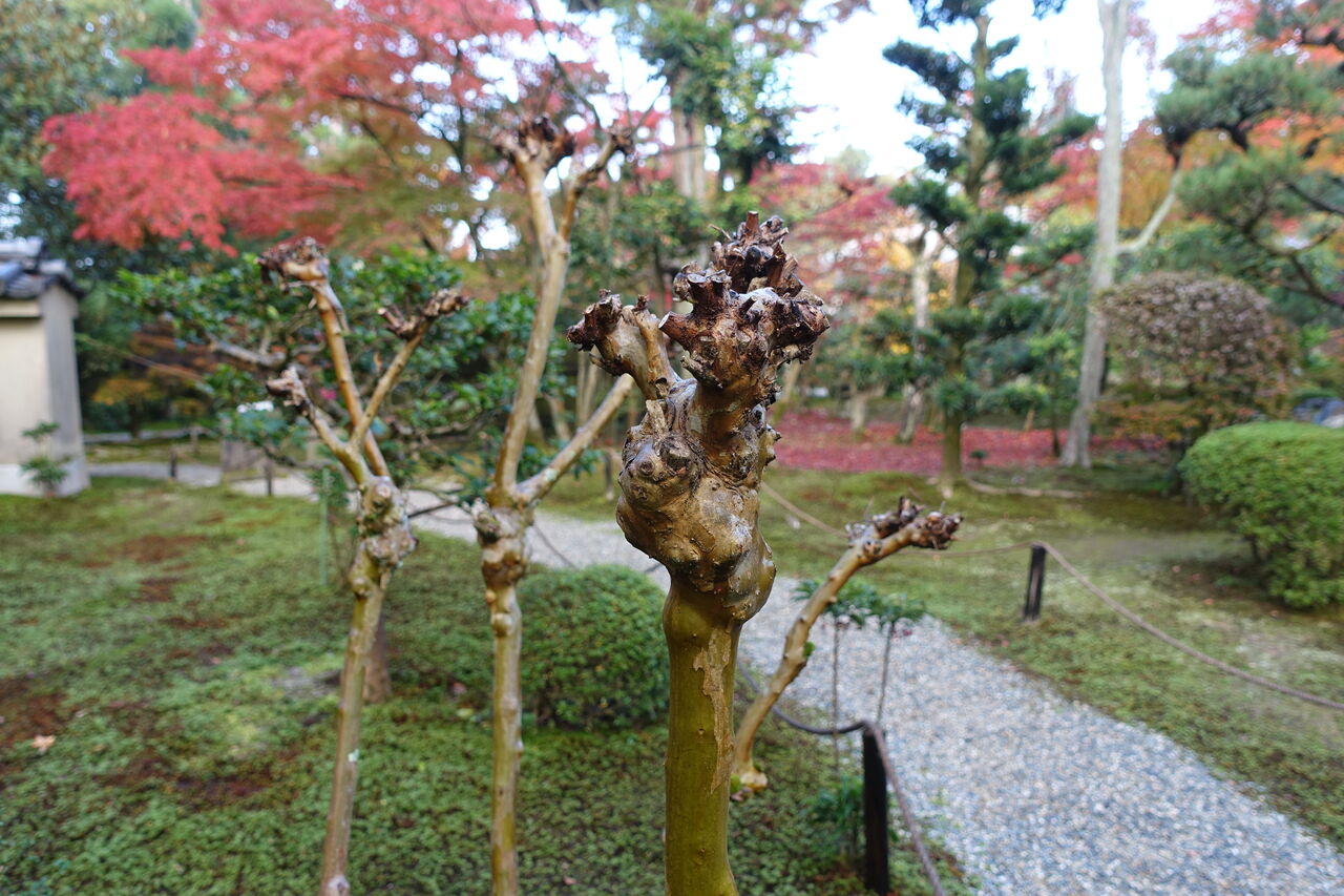 2023年12月13日 おう!!造形だね!! おう!! 握りこぶしだ!! 何か、ロダンの作品の様じゃ!! この瘤は何じゃ?? 確か夏に花咲いていた所じゃ。 そうじゃ、赤の百日紅が咲いておった。 へいい、和尚がこの前に刈り込みをしてたなあ!! 枝を払うと、この様になるのか 時間が経つとそれなりに面白く、 げんこつの様になるのじゃなあ!! これで春になると、枝を出し、又、花が咲くのか!! 木と強いものじゃ!!!!!