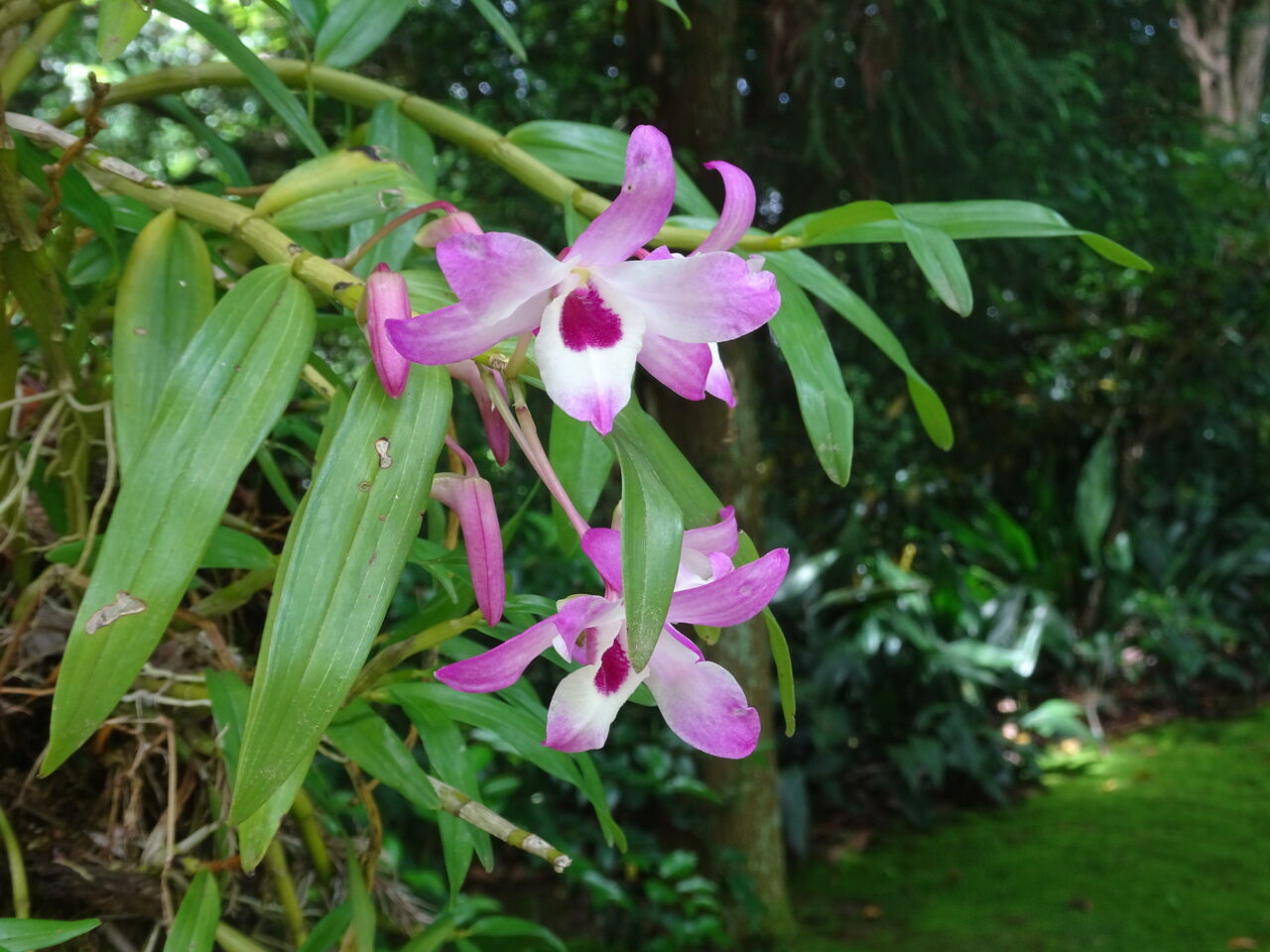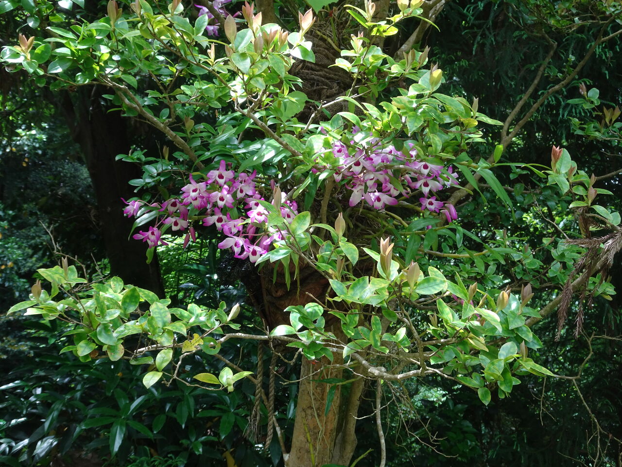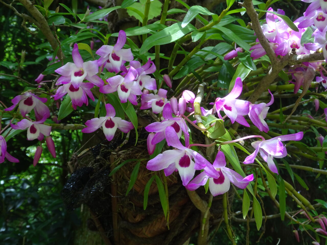 2024年06月04日 石斛(せっこく・長生蘭) 木に花が付いた! 冬に咲く山茶花に変わった花が?? 弦の様な根っ子と茎! しろの中に赤い花!! それもようけ、一杯!!! 中々の見栄えじゃ!! 和尚によると、貰ったものを木に括りつけたようじゃ!! 鉢に入れて、地面に置いておいたら! 他の雑草が茂って、不味いと木に掛けたら! 花が咲いたとの事じゃ!! 矢張り条件で、咲き方も違うようじゃ!! 目を楽しまさせてくれる!!!!!