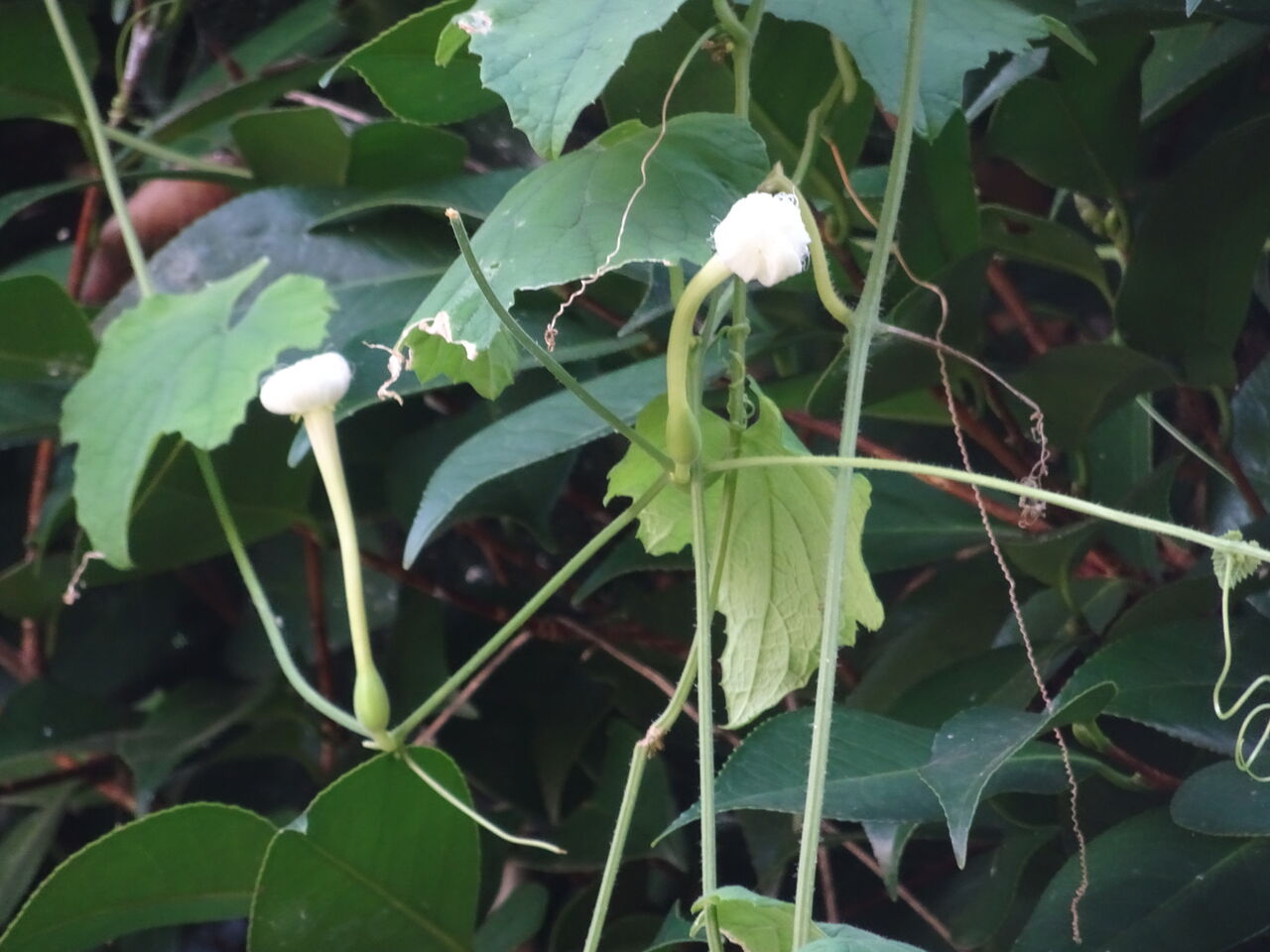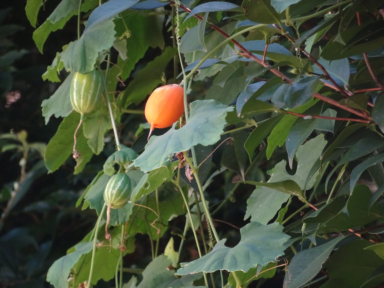 2024年08月16日 烏瓜 おう! アゲハが留まっておる!! なんや、木に絡まった蔓のような枝じゃ!! うんや、その下に花が有るようじゃ!! 蜜を吸うとるのかやい? 白い花じゃあ!! あんなに細長い花じゃが?? 蜜が吸えるのかのう??? じゃが、実が出来ておるので!! 受粉もしとるのじゃろう!! 実が熟すと黄色い実になる!!! 中の実は布袋さんのような形をしとる!!! 自然はおもしろい!!!!!