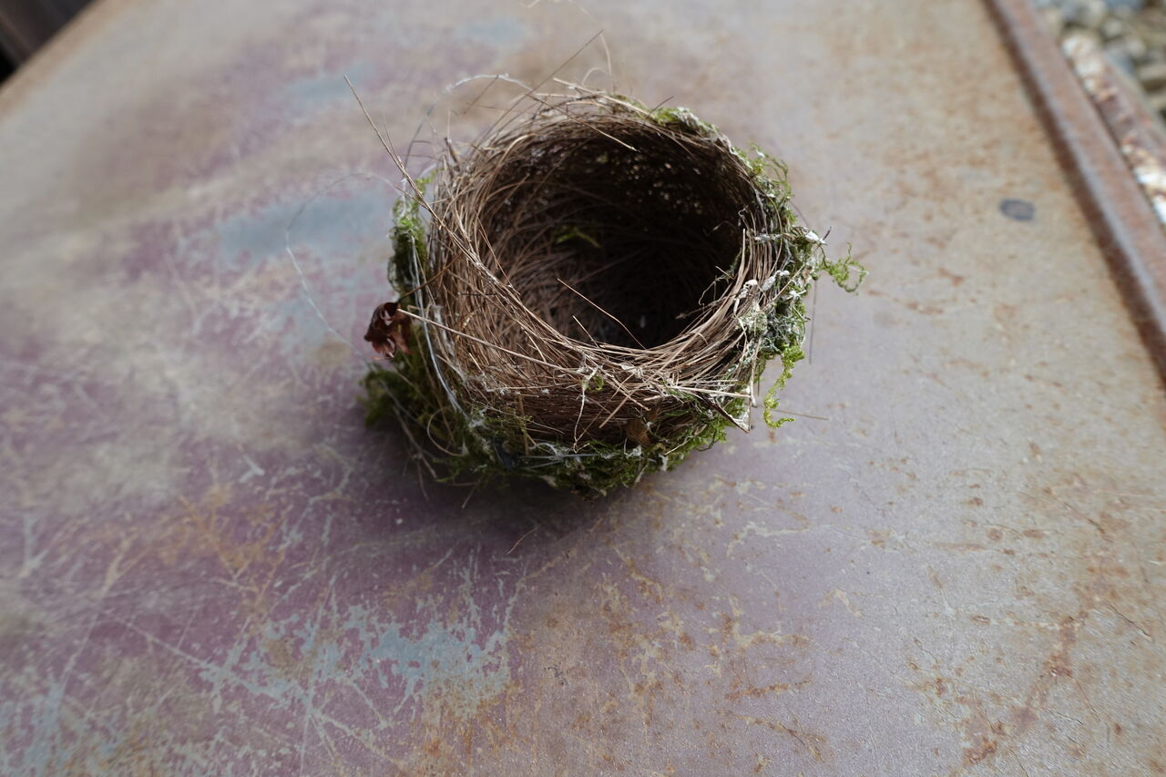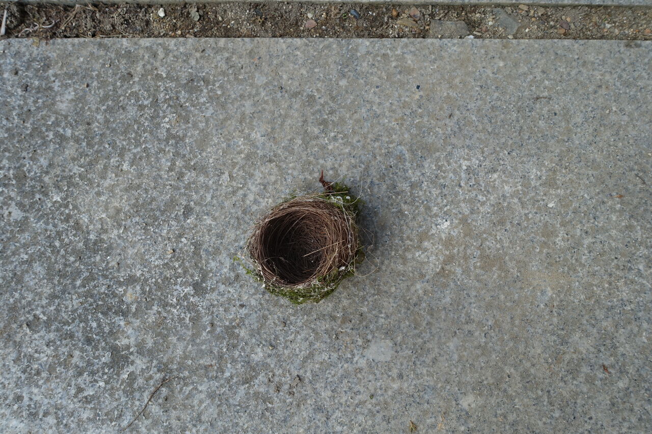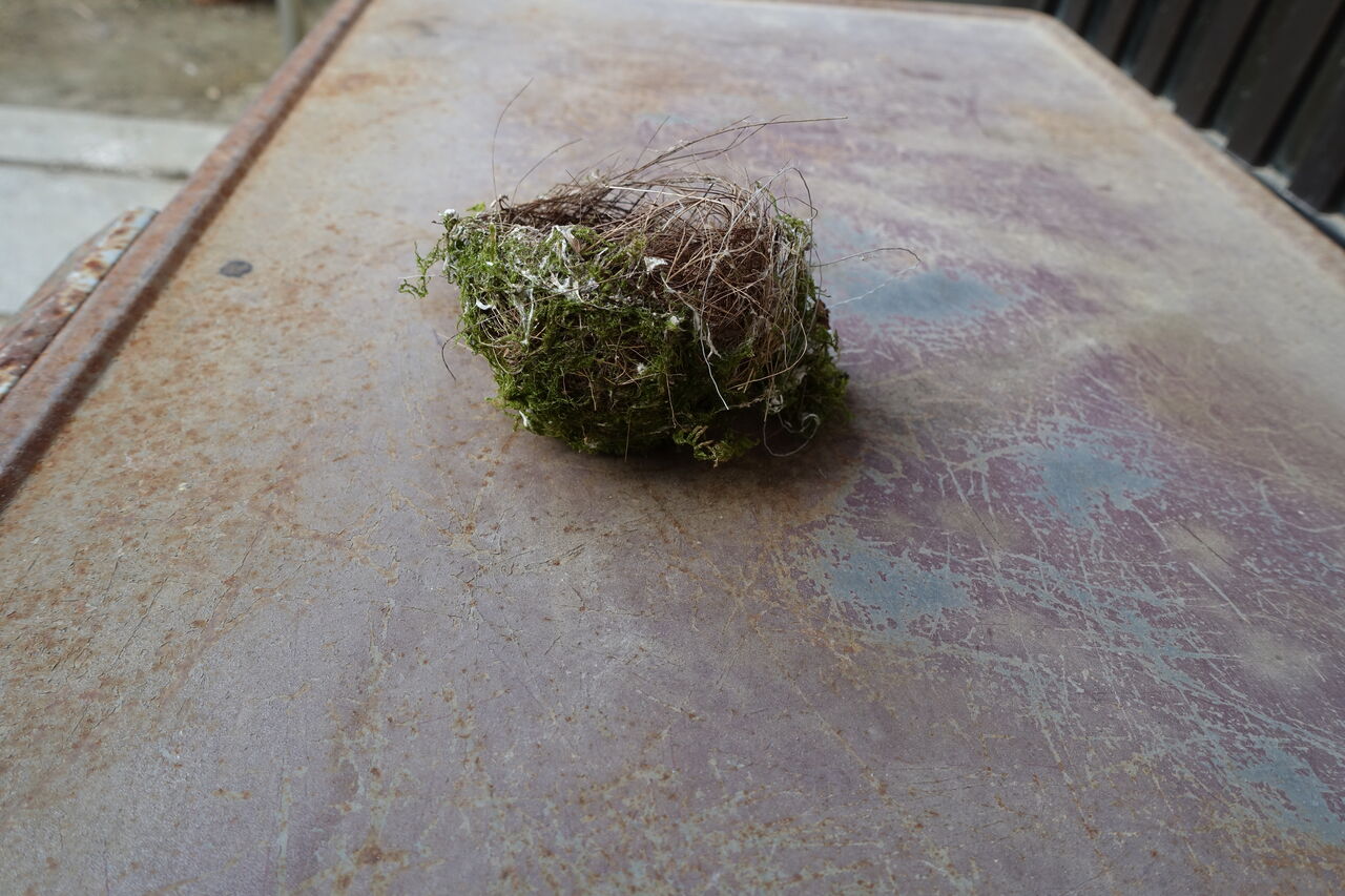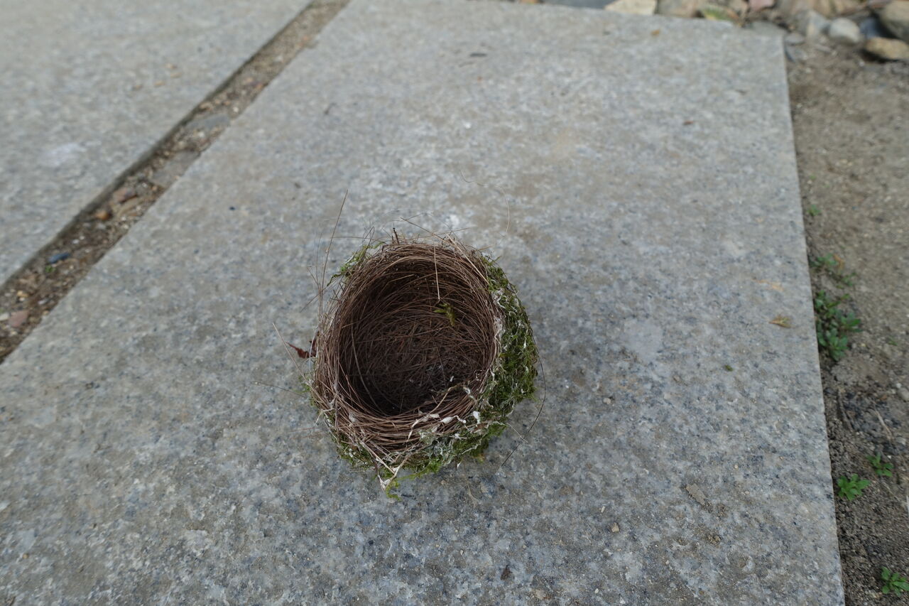2024年08月28日 鳥の巣 春に卵を生む小鳥! それが孵って、その家である巣を捨てる!! そこいらに行って餌を探す!! 留鳥ではあるが、その移動範囲は広い!! その巣が使われないと、弱くなり風で落ちる!! 住職が掃除の時にそれを拾ってきた!! 毎年1っ個は見つかる!! こんな小さな巣に卵が2~4個!! そして孵化するとその巣はお払い箱!!! もう少し大きく、頑丈な巣を造り!! 2~3年でも使えばよいのに!!!!! 新築がええのかいなあ!!!!!