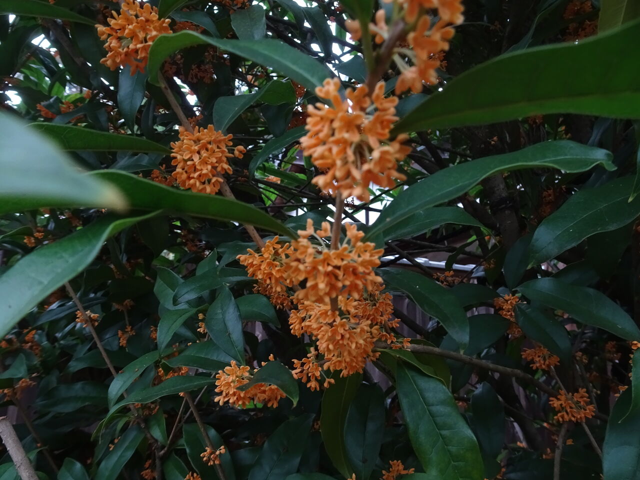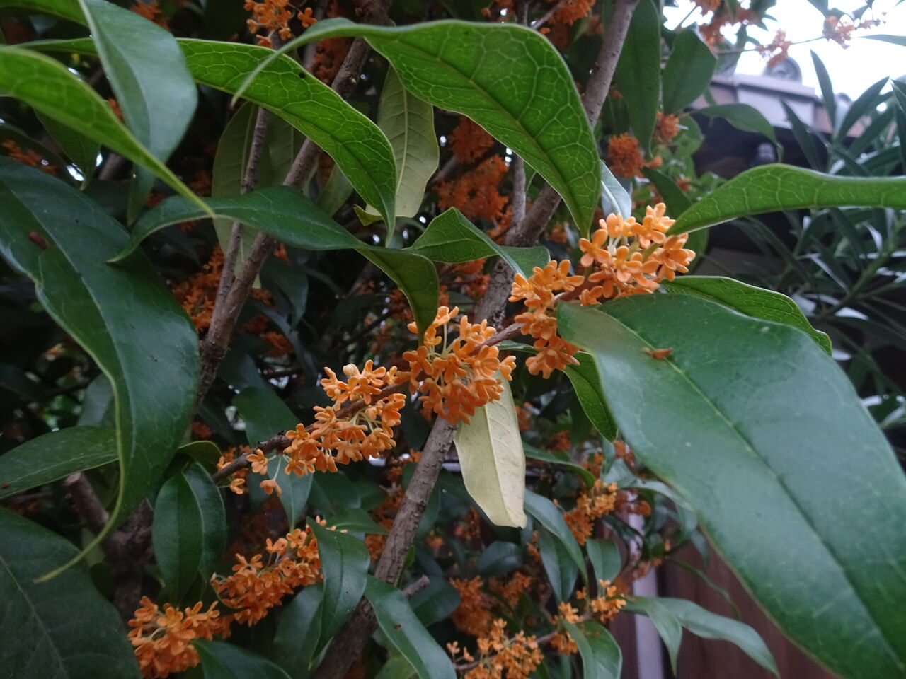 2024年10月24日 金木犀 おや? いい香りが?? おう。金木犀じゃ!! 黄金色ではないが!! 香りは最高じゃ!! 日照りが続いたので・・ 開花が遅れたが・・ 彼岸花と同じく、2~3週間遅れじゃ・・ しかし、即宗院の此処かしこで咲いて、香りを流しとる!! 彼岸花の白が目に付くのと違い!! 香りが漂うのもええもんじゃ!!!!! 樹木葬の法要の折じゃて、皆さんもお喜びであろう!!!!!
