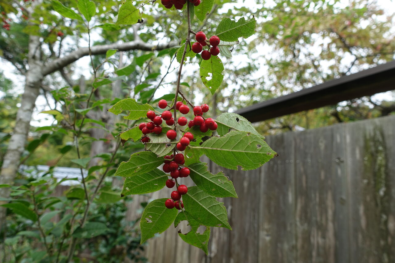 2025年10月16日 梅擬 梅の実が実った・・ 梅の実と言えども赤い実じゃ・・ 何処が梅じゃ?? 何々?? 葉っぱが梅に似とるだけじゃそうじゃ・・・ 実は小さく真っ赤・・・ 実によう付いとる・・ 昨年の冬に、和尚が茂り過ぎと、間引いたら・・・ ようけ実を付けた!!! 食えれば良いのに・・・ じゃが旨くない・・・・・
