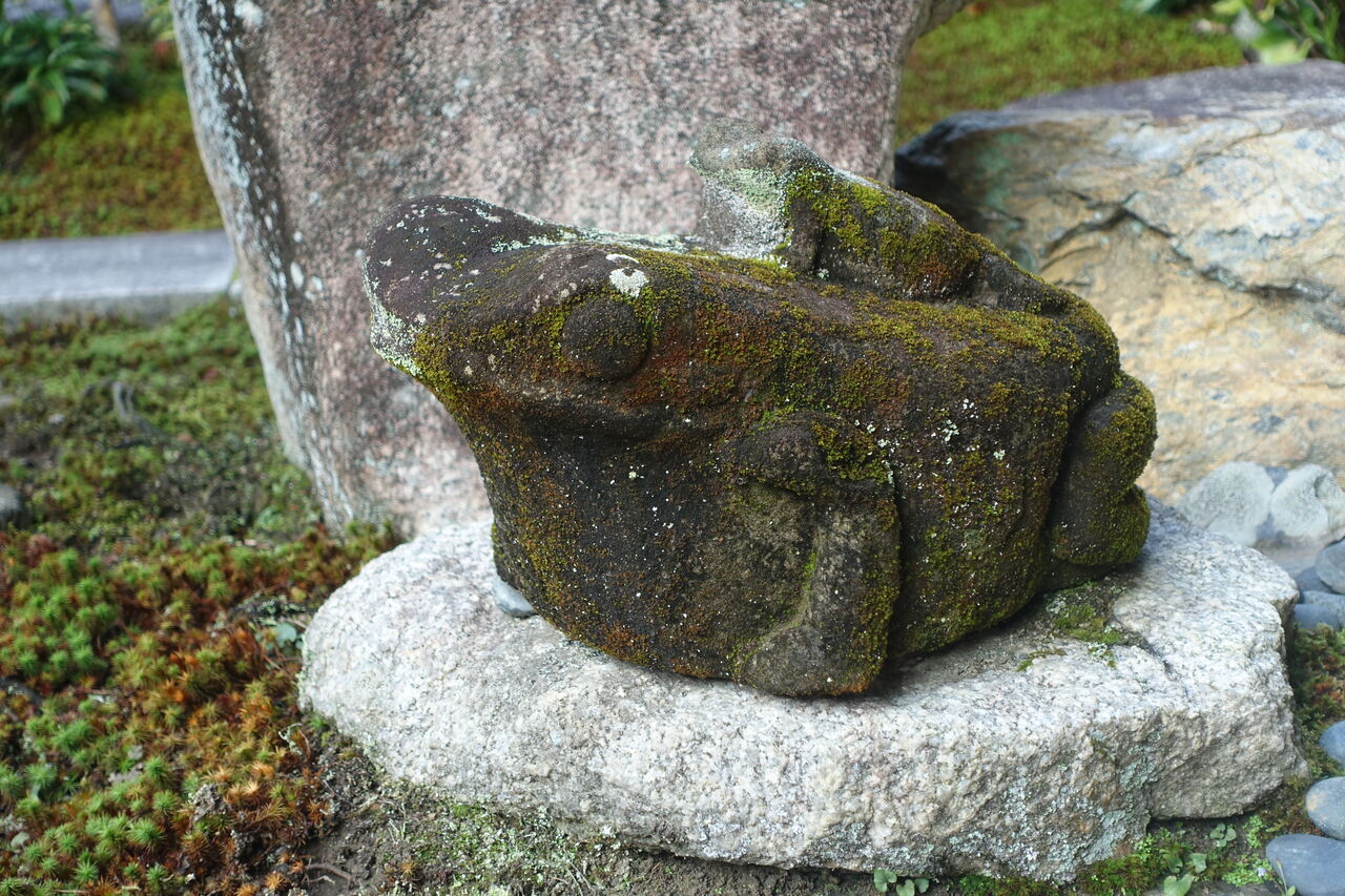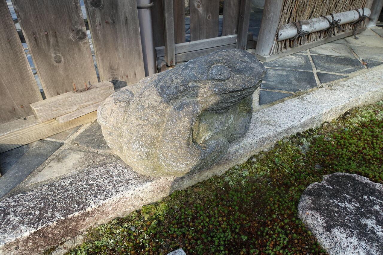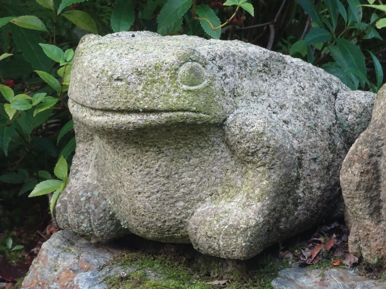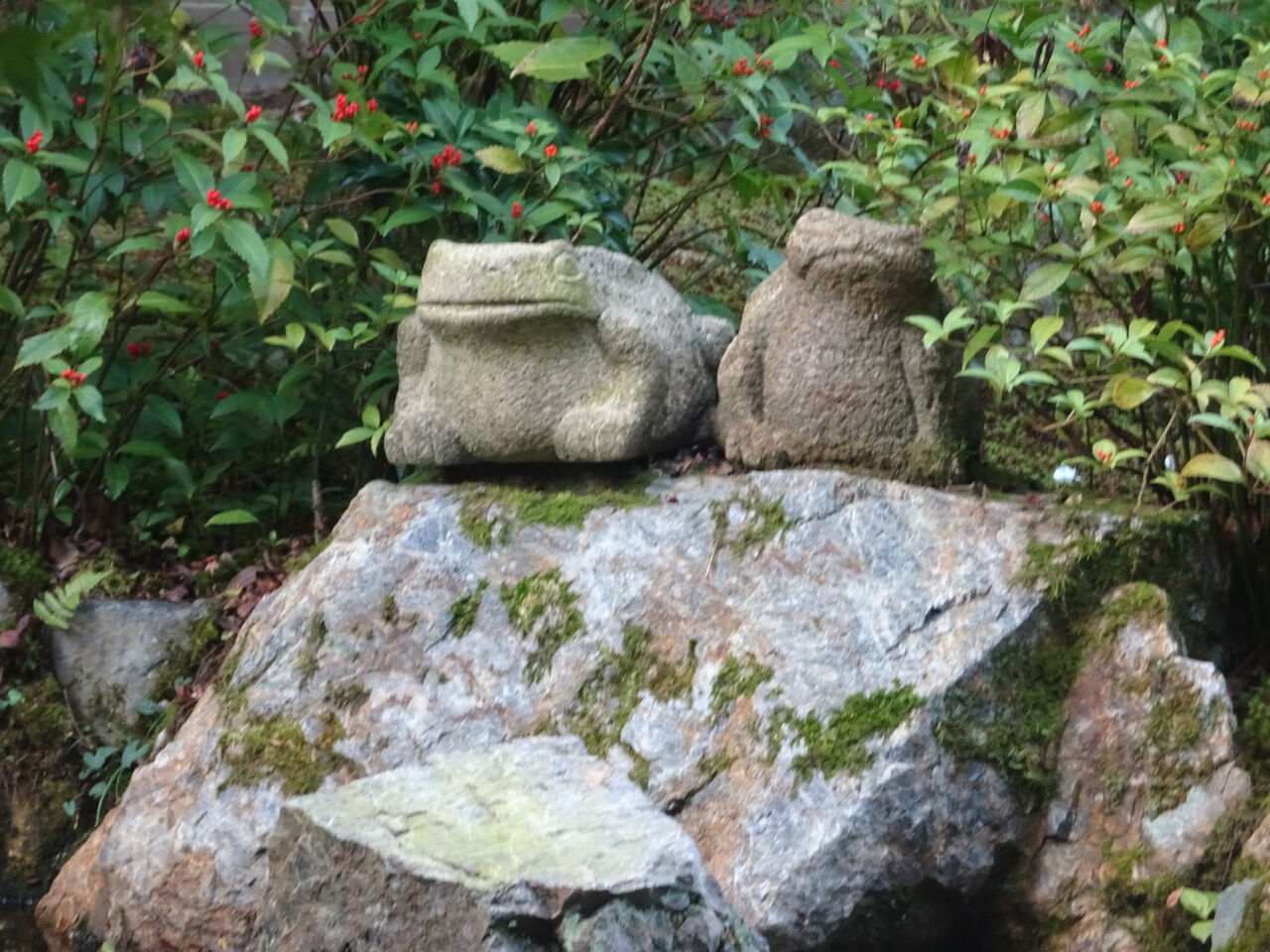2025年11月24日 そう言えば!!! もう2匹・・ いや3匹か?? 玄関先に、親蛙と子ガエル・・ その横に一回り小さいカエル・・ 手水鉢の陰に隠れて・・・ お客さんを迎えておる・・・ カクレンボしとるのが可愛いのう!!!!!!