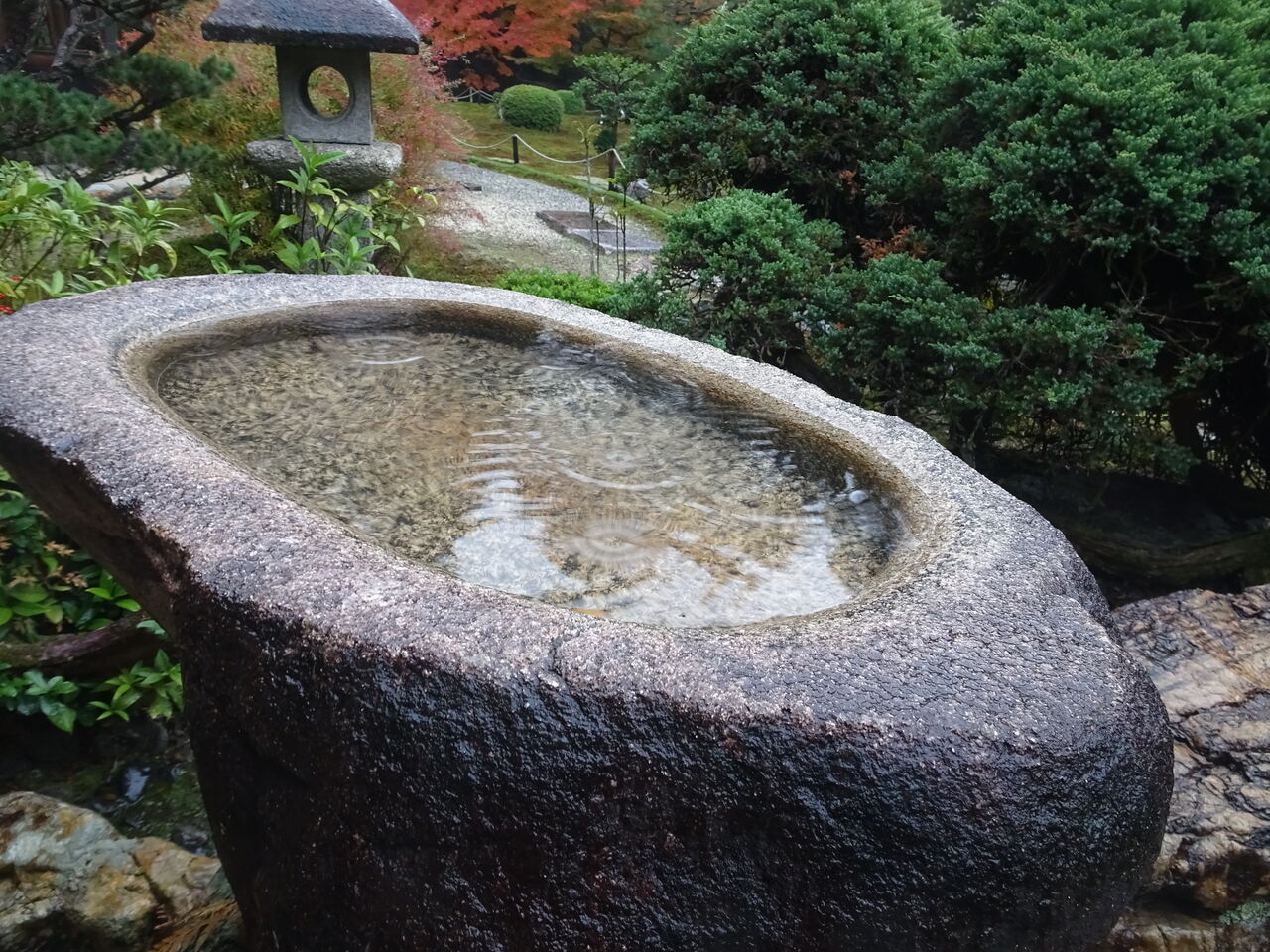2025年11月26日 雨じゃ 雨じゃ 一か月ぶりの雨じゃ。 もみじも喜ぶじゃろう・・ 手水鉢に雨紋・・ 中々ええもんじゃ・・ 雨の中カラスも行水には来ん・・・ 木々は喜ぶが苔も喜ぶ・・・ 観光客も少なく!! 狸も喜ぶ!!!1! じゃが色づいた紅葉!! 雨の一滴で落葉しよる!!! 和尚は明日の掃除が大変じゃ!!!!!