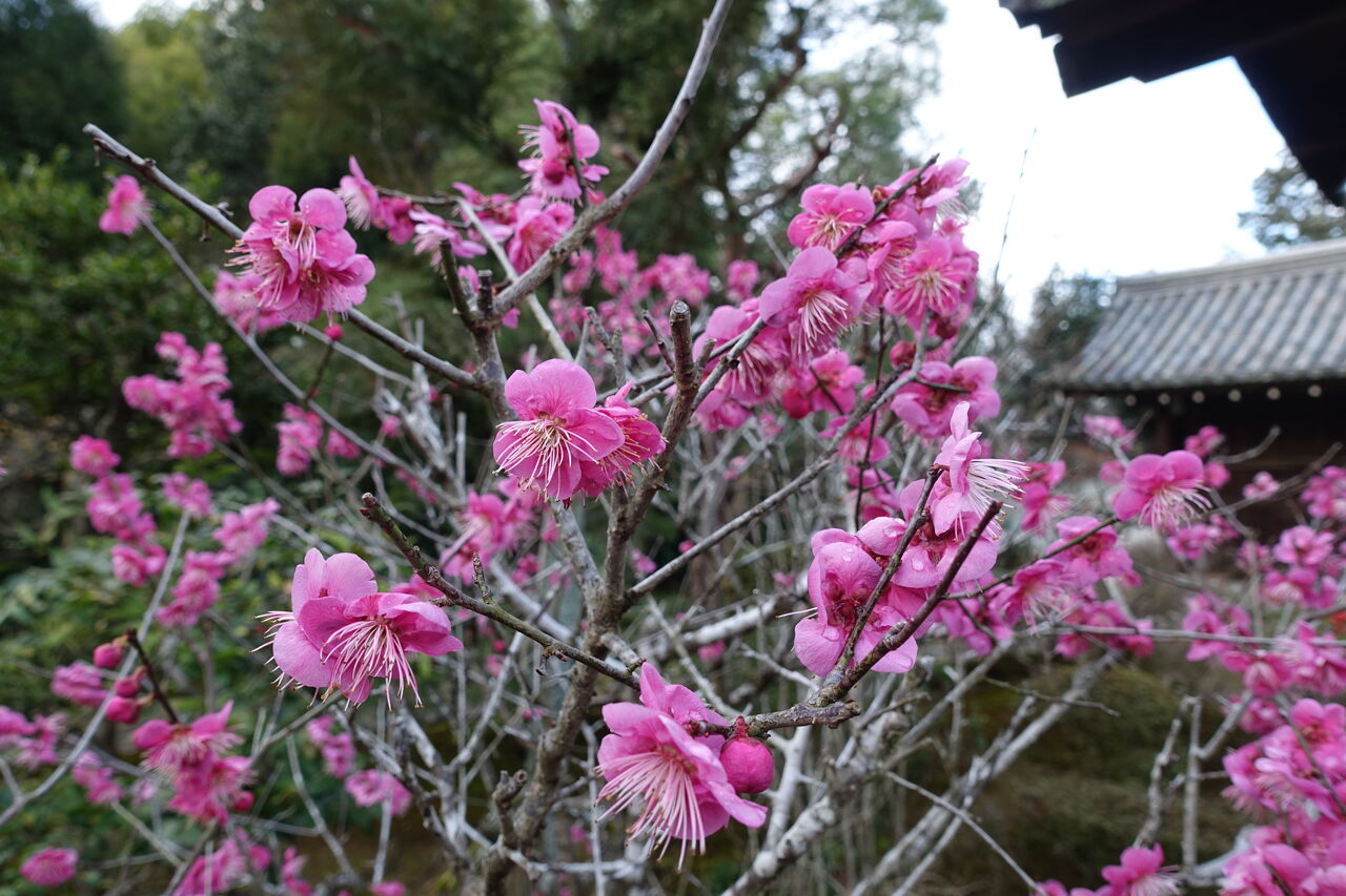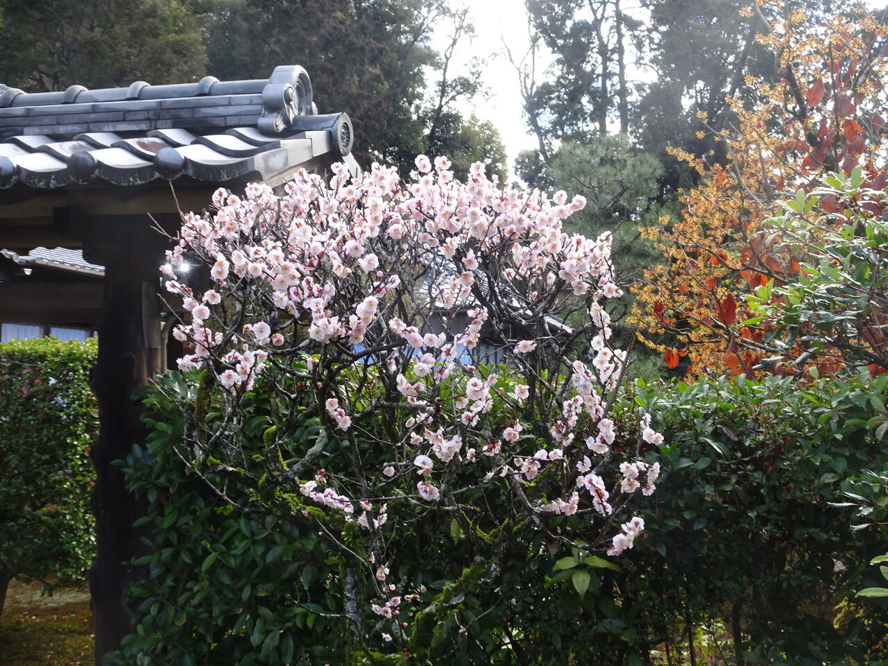 2026年02月25日 白梅 小門の梅も満開 小門の両脇に ようこそ、お越しやす、と 中々ええもんじゃ!! 他では、是でもか、是でもかの花木が多いが そこいらに、ホット咲いているのが何かええのう!! 見てみろ!!!!では無く 目に入りましたか、が乙なもんじゃ!!!