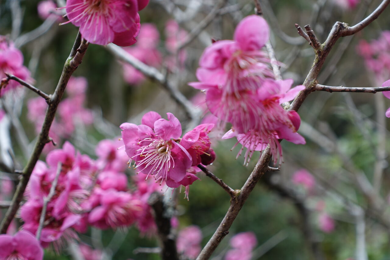 2026年02月23日 一挙に春 今月始め、雪と言っていたが この一週間で、一挙に春になった!! 紅梅が満開!! メジロや鶯が寄って来た!! 紅の梅が花弁を拡げ 雄蕊が頑張っている!! 虫がいないので 受粉するか少し心配!! まあ、毎年の事なので心配不要か!!!
